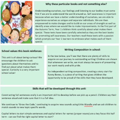 Welcome to the Recommended Reading section of the Year 1 class page. Here you will find our Reading Spine which outlines all of the books we use and recommend this year and why we love them so much. We are very proud of our list, which is bespoke to us - all the books featured in this document have been chosen because they mean something to us at Muscliff.